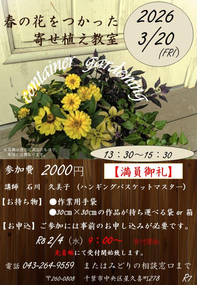 先着順にて(定員20名)。2月4日(水)9:00より、☎043-264-9559または、直接みどりの相談所内事務所にて受付いたします。