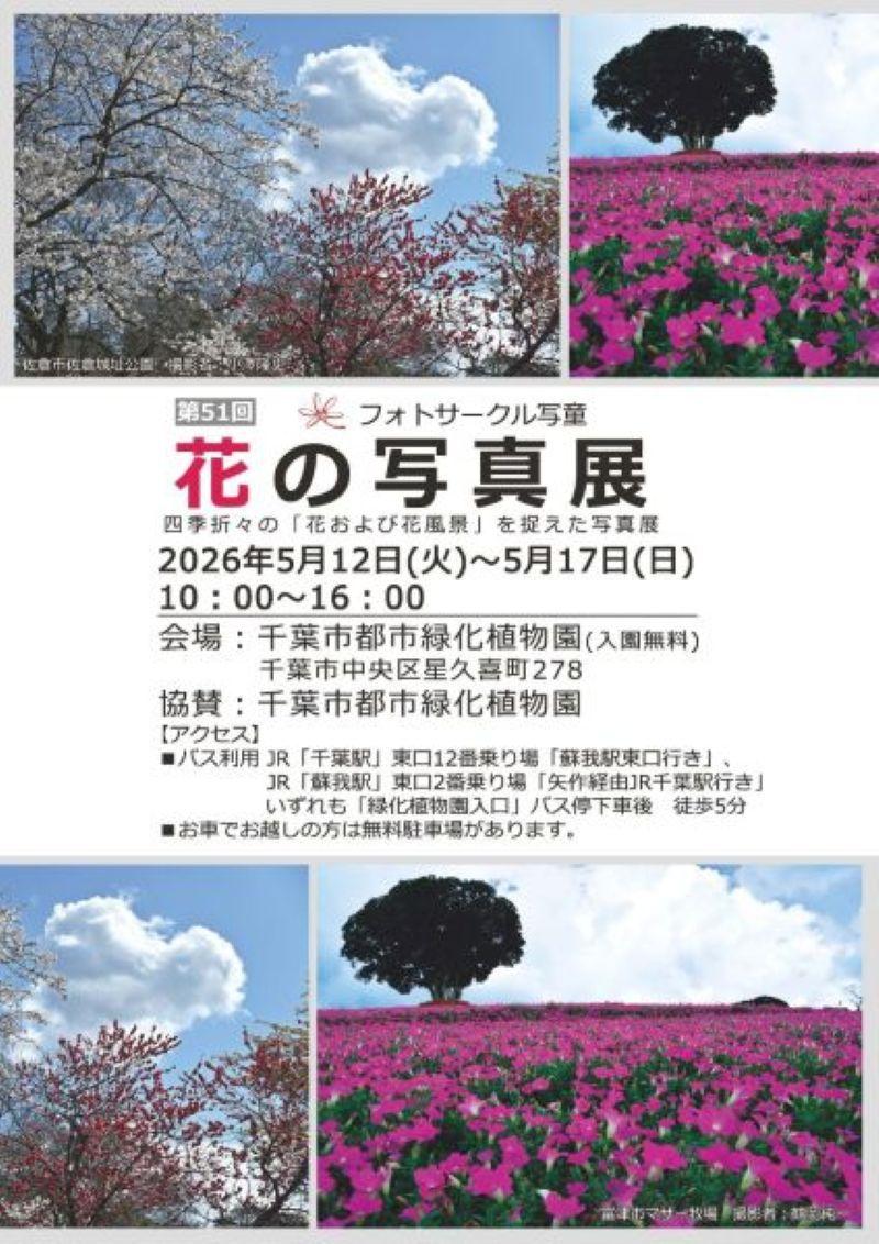 イベント『第51回 花の写真展』ボランティア団体〝フォトサークル写童〟の皆様の作品展示会が始まります。