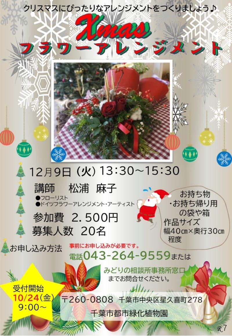 ■フローリスト/ドイツフラワーアレンジメント・アーティスト■ 松浦 麻子先生の「Xmas フラワーアレンジメント」教室を開催します♪