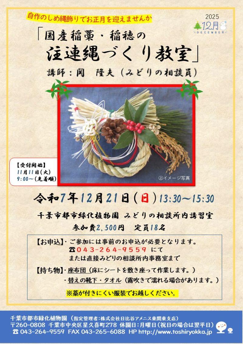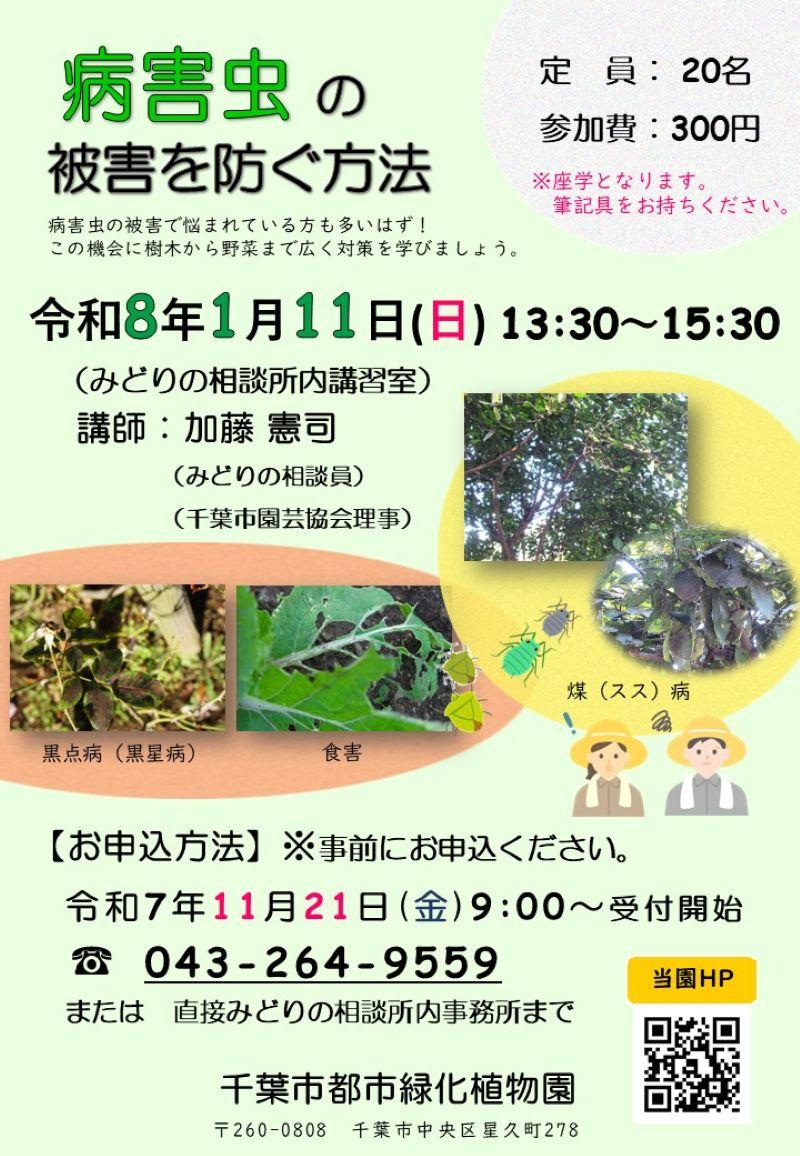 - 事前のお申込が必要です。☎043-264-9559または直接みどりの相談所内事務室まで 申し込み開始日:令和7年10月24日(金)9:00~〈先着順となります〉