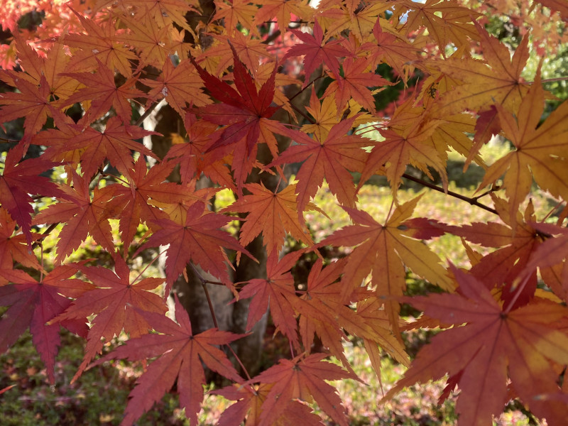 和名イロハモミジは、葉が手のひらのように5 - 7つ裂片があり、この裂片を「いろはにほへと」と数えたことに由来します。